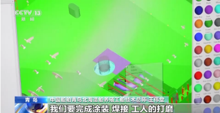 中国船舶青岛北海造船养殖工船技术总师 王伟堂:鱼排是第一次用在船舶上,整个鱼排空间比较小,首先考虑就是怎么来装。在很小的空间内,我们要完成涂装、焊接、工人的打磨,还有系统调试。我们前期跟设计院做了深入的探讨,寻求了一个最佳的方案,就形成了目前这个状态。