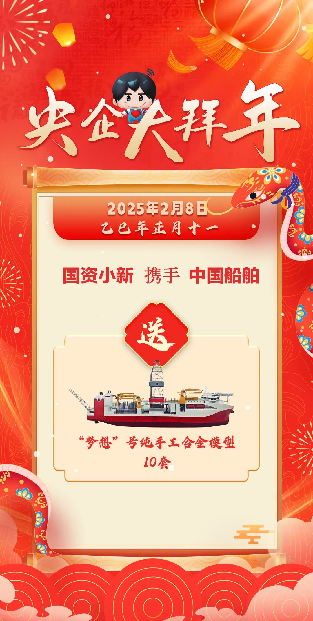 今天“国资小新”联合中国船舶抽取10位幸运粉丝,送上“梦想”号纯手工合金模型。