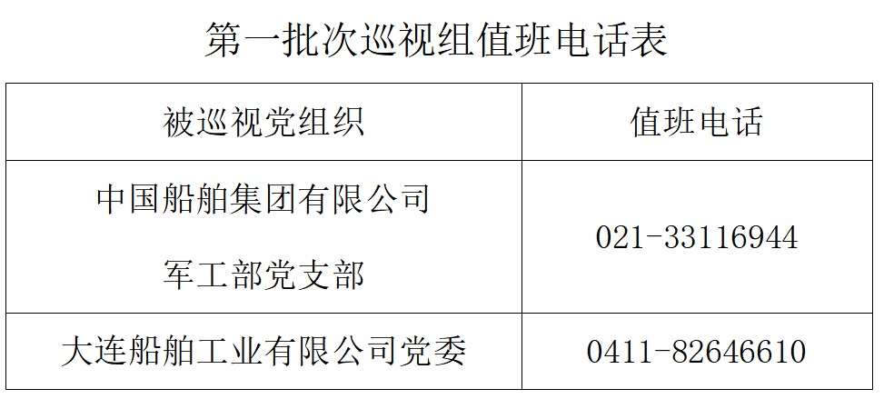 巡视期间,集团公司党组巡视组设置值班电话和联系信箱,主要受理反映被巡视党组织领导班子及其成员、下一级党组织领导班子主要负责人和重点岗位领导干部问题的来信、来电、来访,重点关注违反政治纪律、组织纪律、廉洁纪律、群众纪律、工作纪律、生活纪律以及巡视整改等方面问题反映。第一批次巡视受理信访截止时间为4月16日。