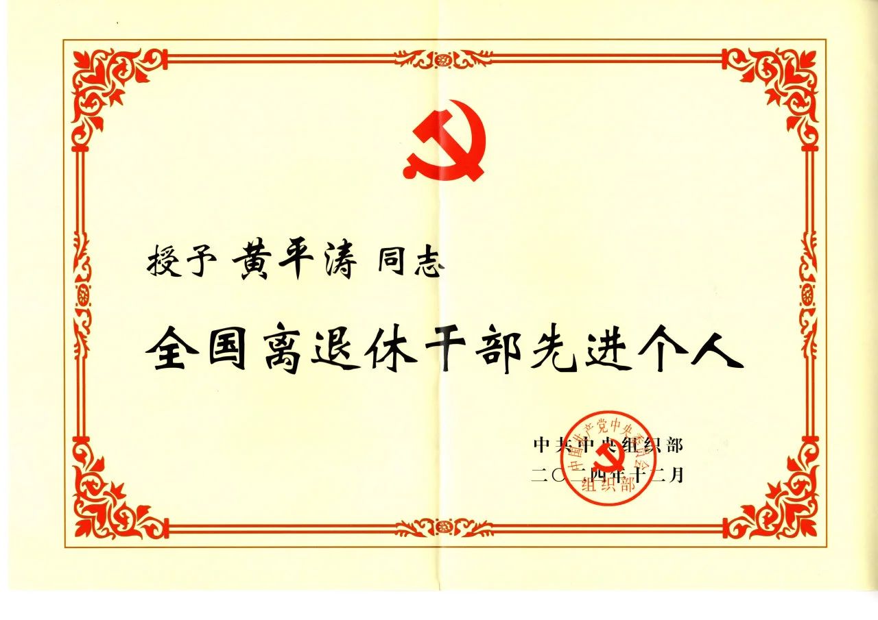 黄平涛荣获“全国离退休干部先进个人”表彰