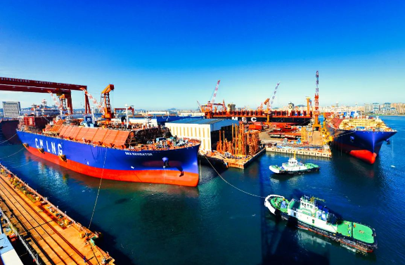 10月28日,中国船舶集团所属中国重工大连造船为招商轮船建造的17.5万立方米LNG运输船2号船圆满完成出坞节点。