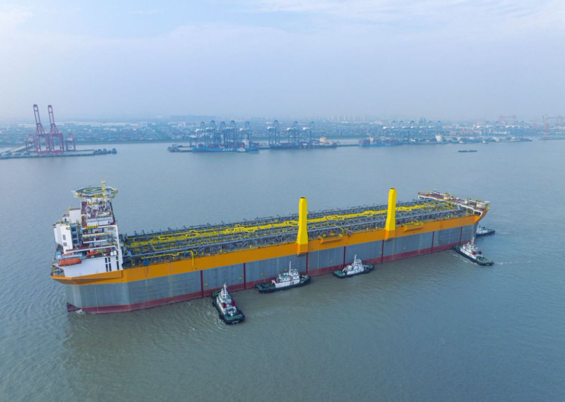 11月14日,由中国船舶集团旗下外高桥造船为荷兰SBM OFFSHORE公司建造的第五艘世界独创230万桶通用型海上浮式生产储油轮(FPSO)“捷豹”号签字交付。