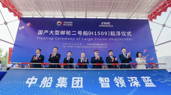 4月28日,第二艘国产大型邮轮“爱达·花城号”起浮仪式在中国船舶集团有限公司旗下外高桥造船举行。中船集团党组副书记、董事、总经理王国强出席仪式并致辞。工信部装备工业二司司长徐春荣,中旅集团党委副书记、总经理范云军出席仪式并致辞。文旅部产业发展司副司长马力,中船集团党组成员、副总经理胡贤甫,中旅集团党委副书记、董事石善博,上海市经济和信息化委员会副主任蒲亚鹏,浦东新区副区长李慧出席仪式。