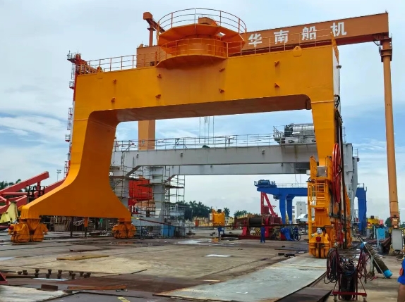 本次交付的起重机由华南船机自主研发设计,专为极端复杂的海上施工环境量身打造。一是动力强劲,65吨及55吨的起重能力可应对大型挖泥设备部件及重型工程物资的吊装转运;二是灵活高效,独特的龙门行走设计赋予其宽广覆盖范围,能在船舶甲板特定区域内实现精准、灵活移动,大幅提升作业效率;三是稳定可靠,针对海上作业高盐雾、高湿度、高风浪挑战,应用了先进的抗腐蚀工艺和结构强化设计,确保设备在严苛环境下持久稳定运行。