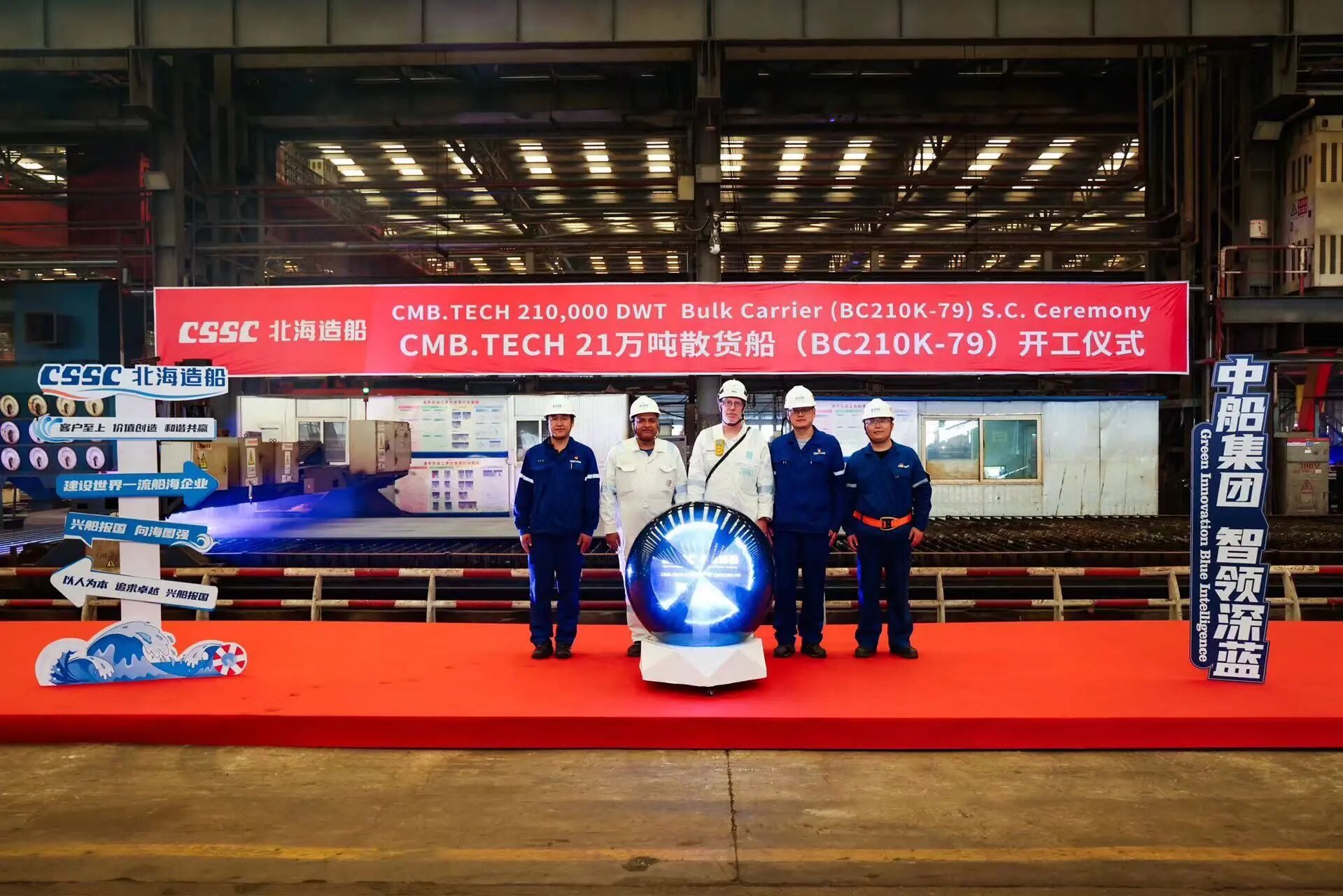 北海造船承建的新加坡EPS公司21万吨液化天然气(LNG)双燃料动力散货船项目60号船和比利时CMB.TECH公司21万吨散货船项目79号船顺利开工。60号船是该系列船舶中的第4艘,79号船是北海造船为该船东建造的第27艘同型船。