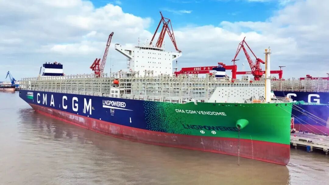 12月12日,中国船舶集团有限公司旗下沪东中华为法国达飞海运集团建造的全球最大24000TEU级液化天然气(LNG)双燃料动力集装箱船“达飞 旺多姆”号提前8个半月命名交付。这标志着沪东中华全面完成2025年生产经营任务,也是其交付的第100艘大型集装箱船。