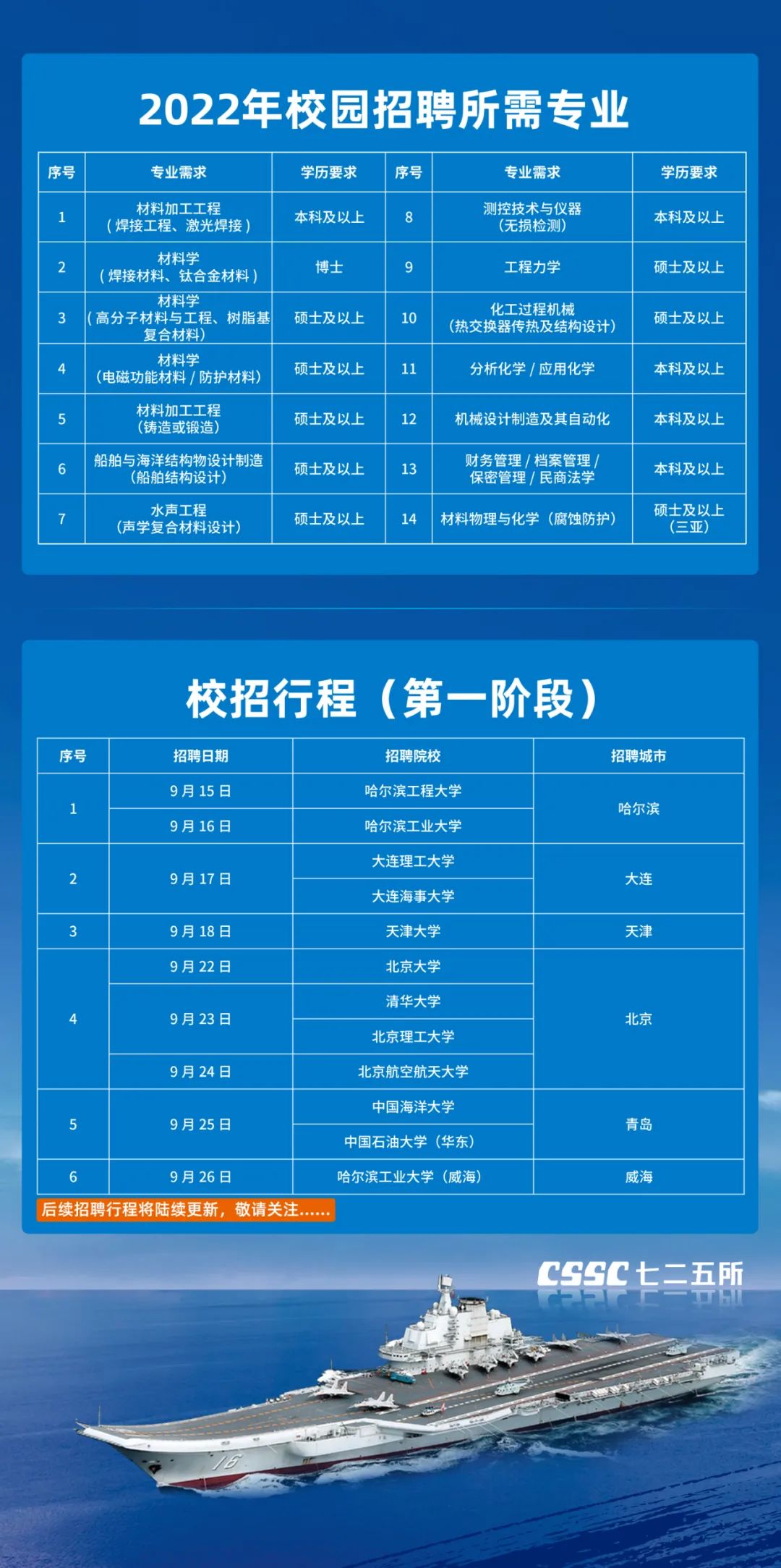 中国船舶集团旗下七一〇所、七二五所校园招聘启事