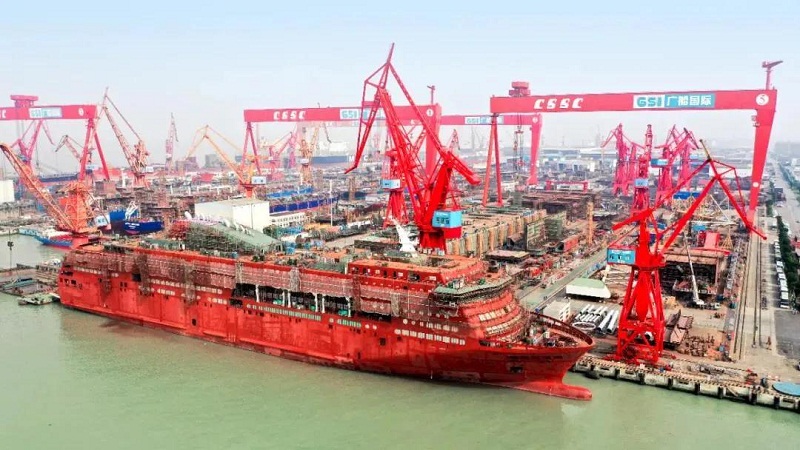 近日,中国船舶集团旗下广船国际新建的薄板平面分段流水线国产工位通过验收移交。该生产线全部建成后将是国内最先进的分段生产线之一。传统的分段制作车间通常情况下需要几百人操作,而使用这样一条分段生产线,这边钢板进去,那边分段出来,根据测算只需要50个人就能运作起来。