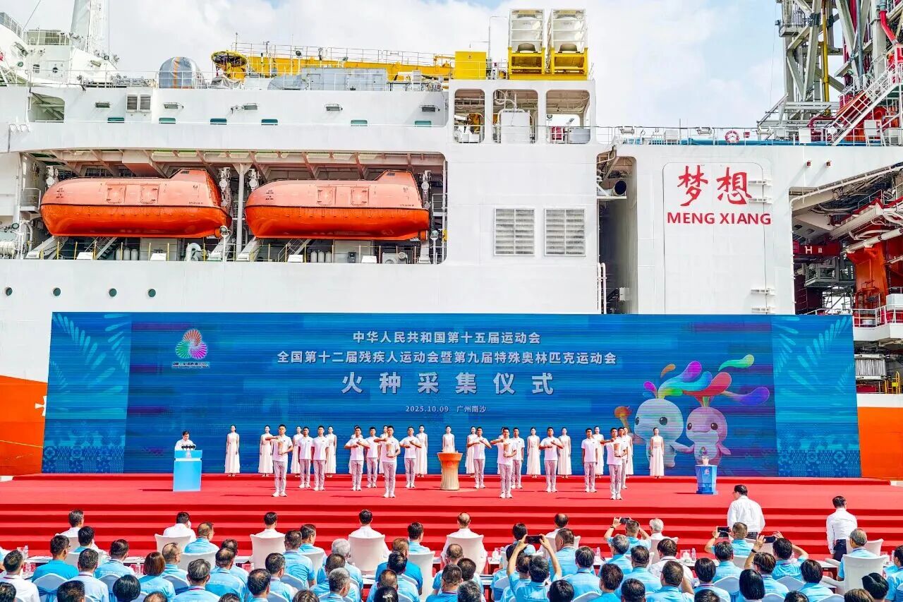 近日,在大洋钻探船“梦想”号的见证下,第十五届全国运动会和全国第十二届残疾人运动会暨第九届特殊奥林匹克运动会火种采集仪式在广州举行。