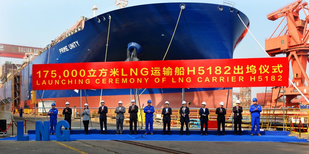 LNG运输船H5182出坞,全船货物围护系统主工序周期缩短20天,有效提速生产节奏。