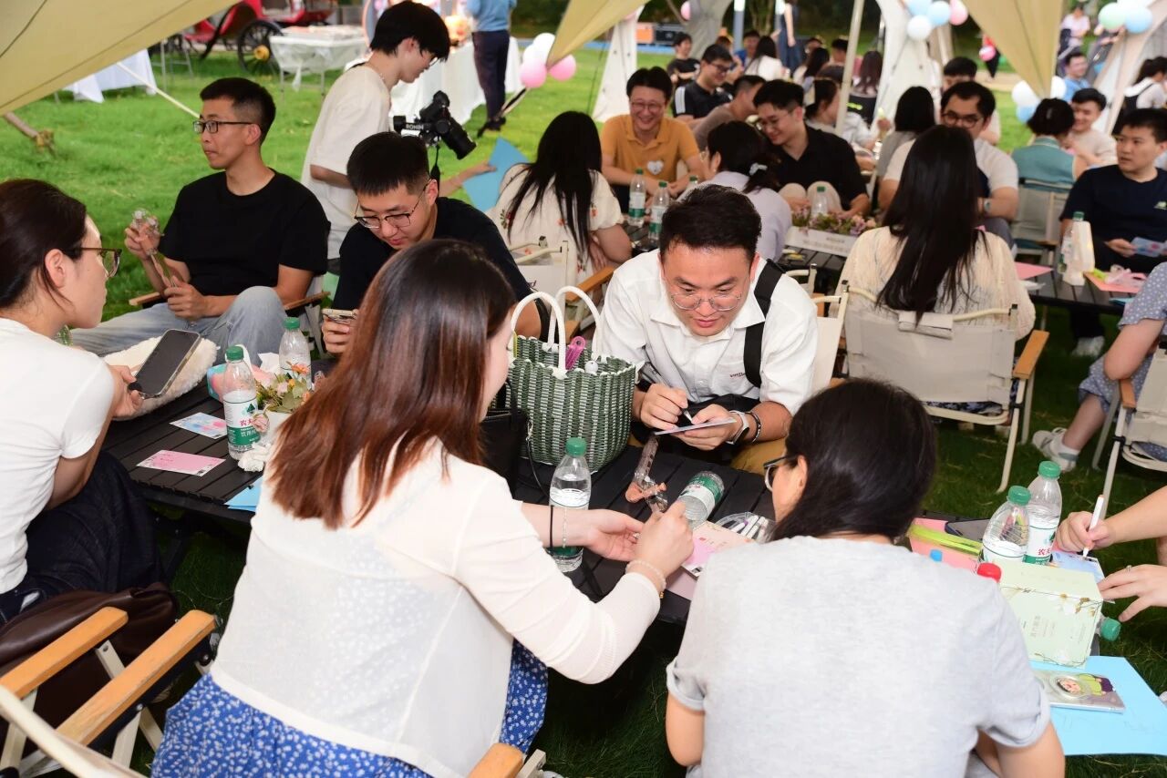 青年男女们带着真诚与热情,在交流中发现共鸣,在互动中收获友谊。“一舰倾心”“团队竞技”等破冰游戏迅速点燃现场气氛,青年们放下羞涩,展现青春活力,现场笑声与掌声不断;“共话知音”“若如初见”让青年男女们能够从容交谈,主动分享个人爱好与职业故事,发现志趣相投的伙伴,创造难忘的互动时刻;“烧烤情缘”将活动推向又一个高潮,在炊烟袅袅与美食香气中,情谊悄然生长;在“携手深蓝”环节,青年男女填写心动卡,坦诚心意,最终10对嘉宾成功牵手,为秋日序章画上圆满句号。